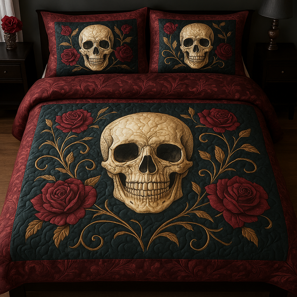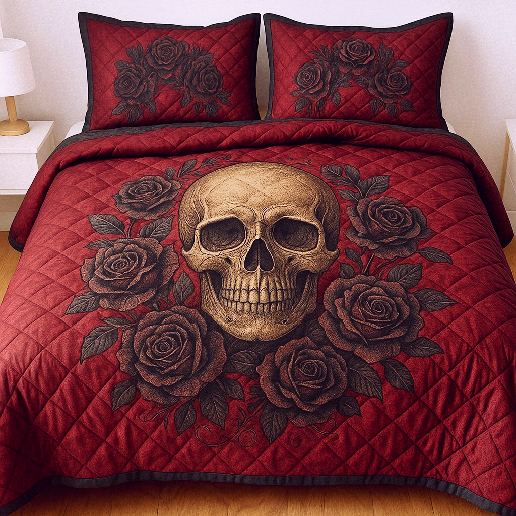 Marivn® Gothic Crimson Skull & Shadow Rose 3-Piece Quilted Bedding Set
