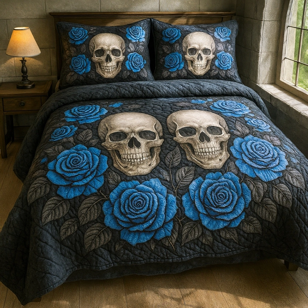 Marivn® Gothic Skull & Blue Rose 3-Piece Quilted Bedding Set