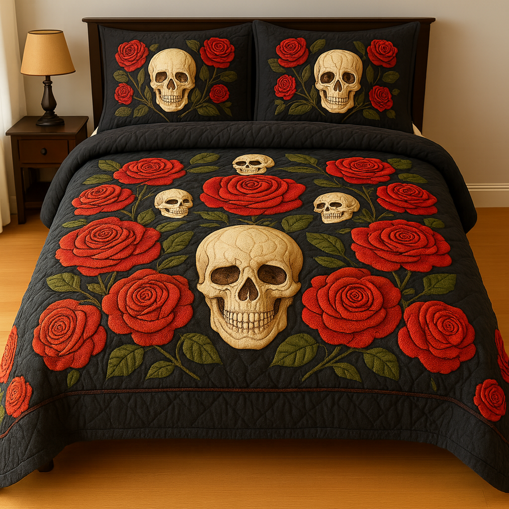 Marivn® Gothic Skull & Crimson Rose 3-Piece Quilted Bedding Set