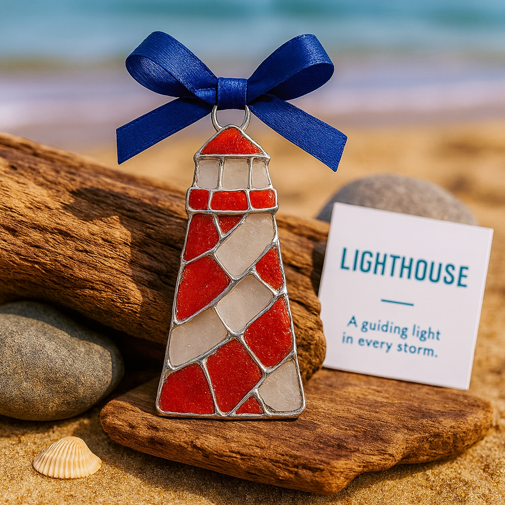 Lighthouse Sea Glass Ornament – A Guiding Light in Every Storm