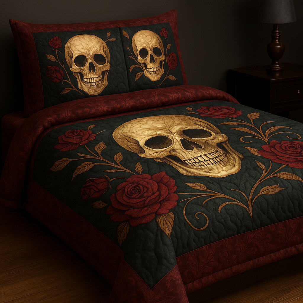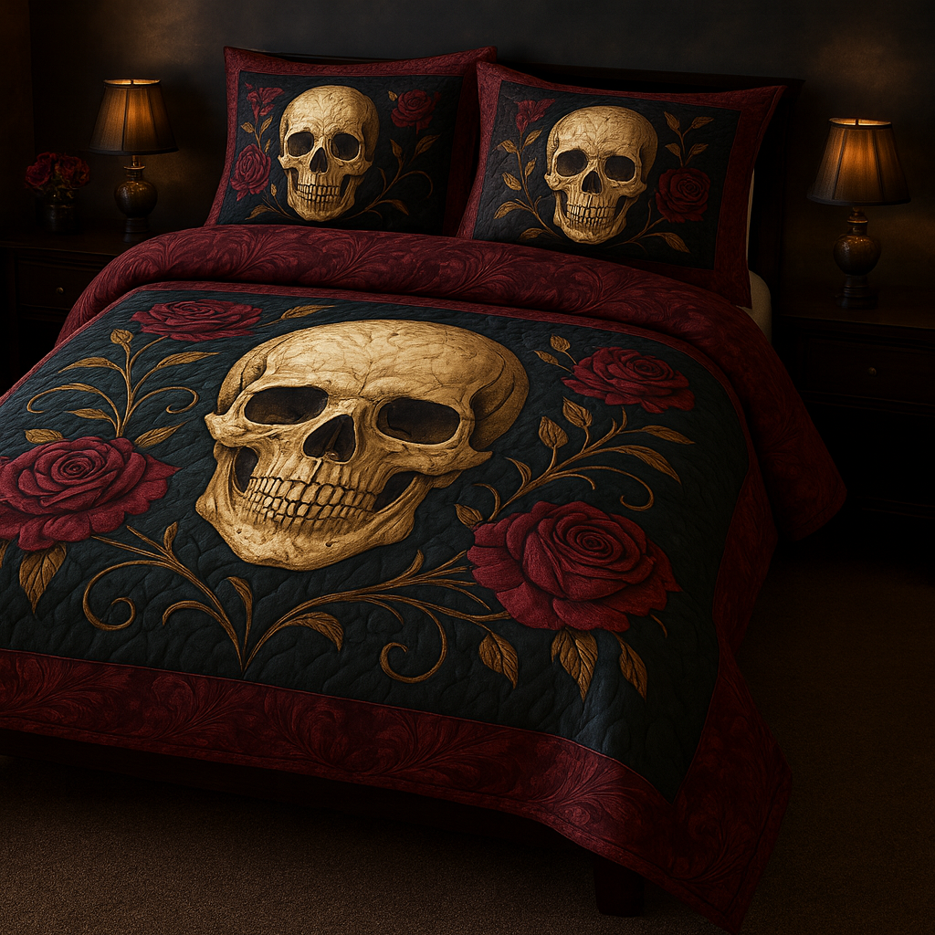 Marivn® Gothic Skull & Bloody Rose 3-Piece Quilted Bedding Set