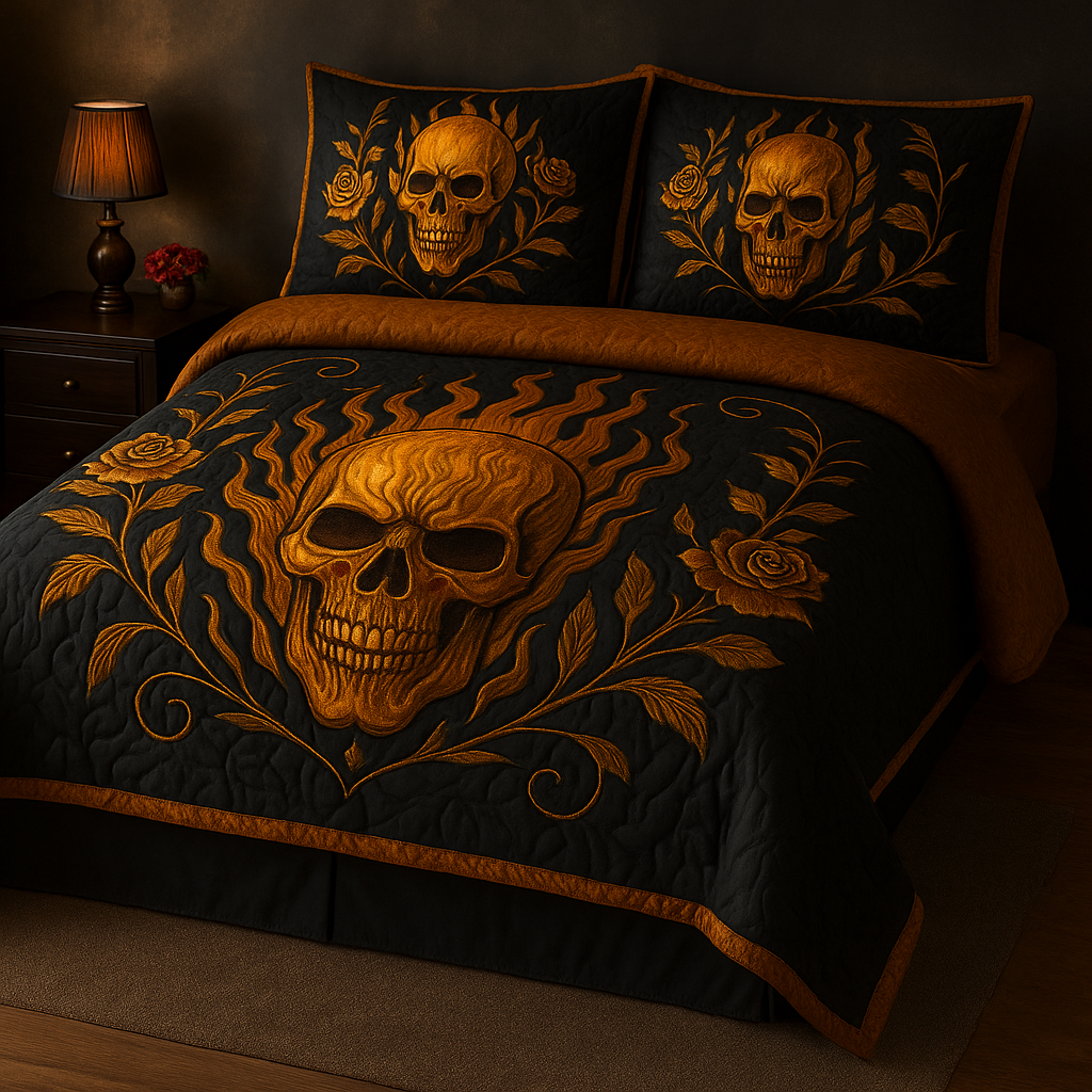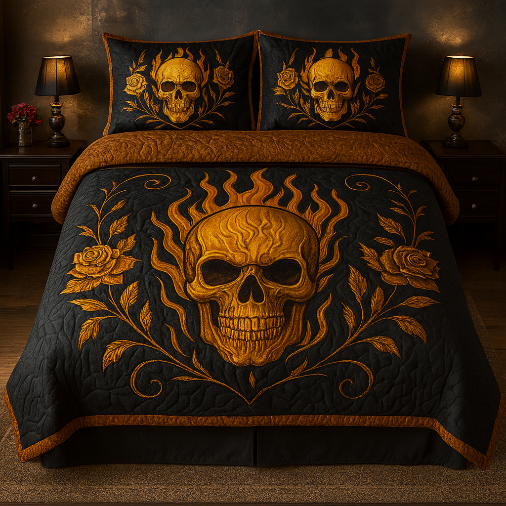 Marivn® Inferno Skull Gothic Bedding Set | Black × Gold Flames